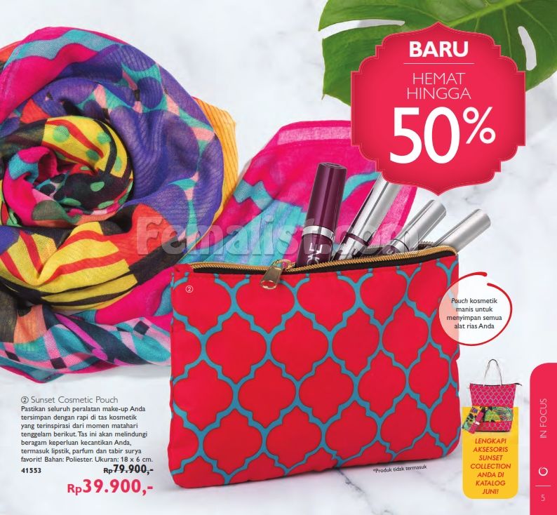 - Hemat hingga 50% untuk Sunset Scarf berukuran 190 cm x 90 cm dan Sunset Cosmetic Pouch di halaman 3.